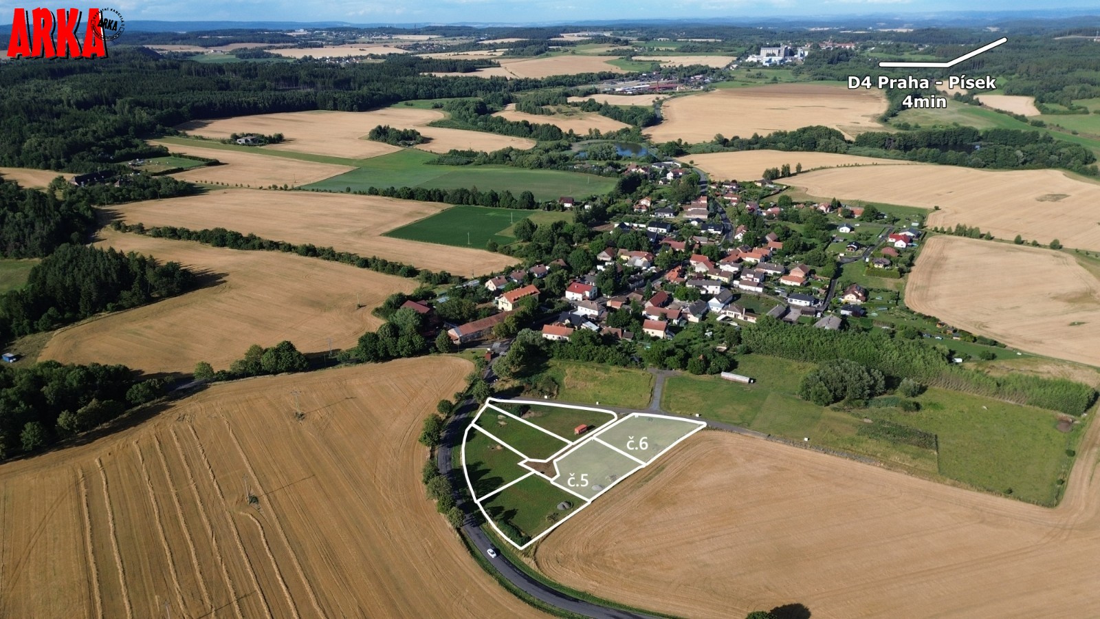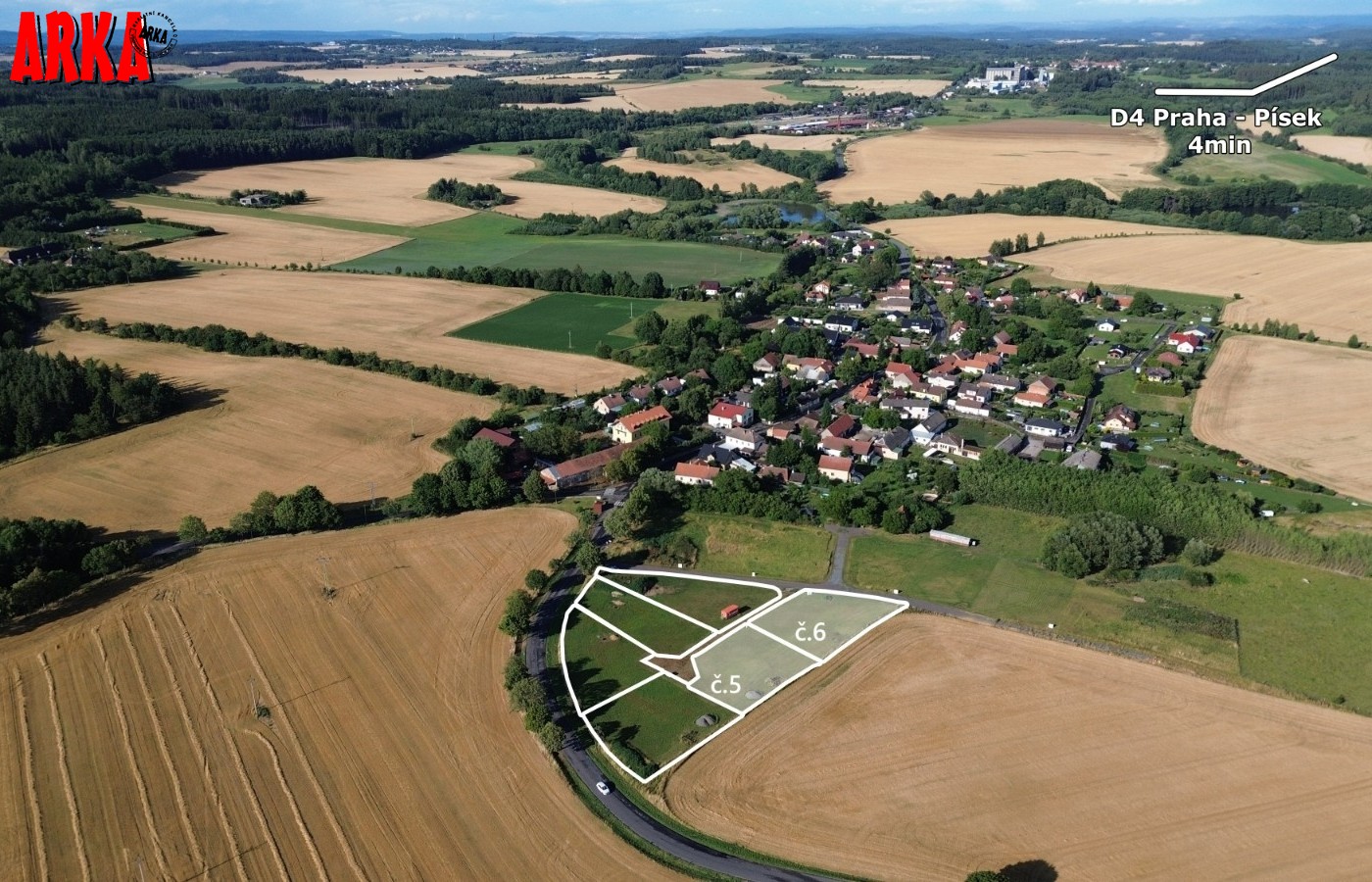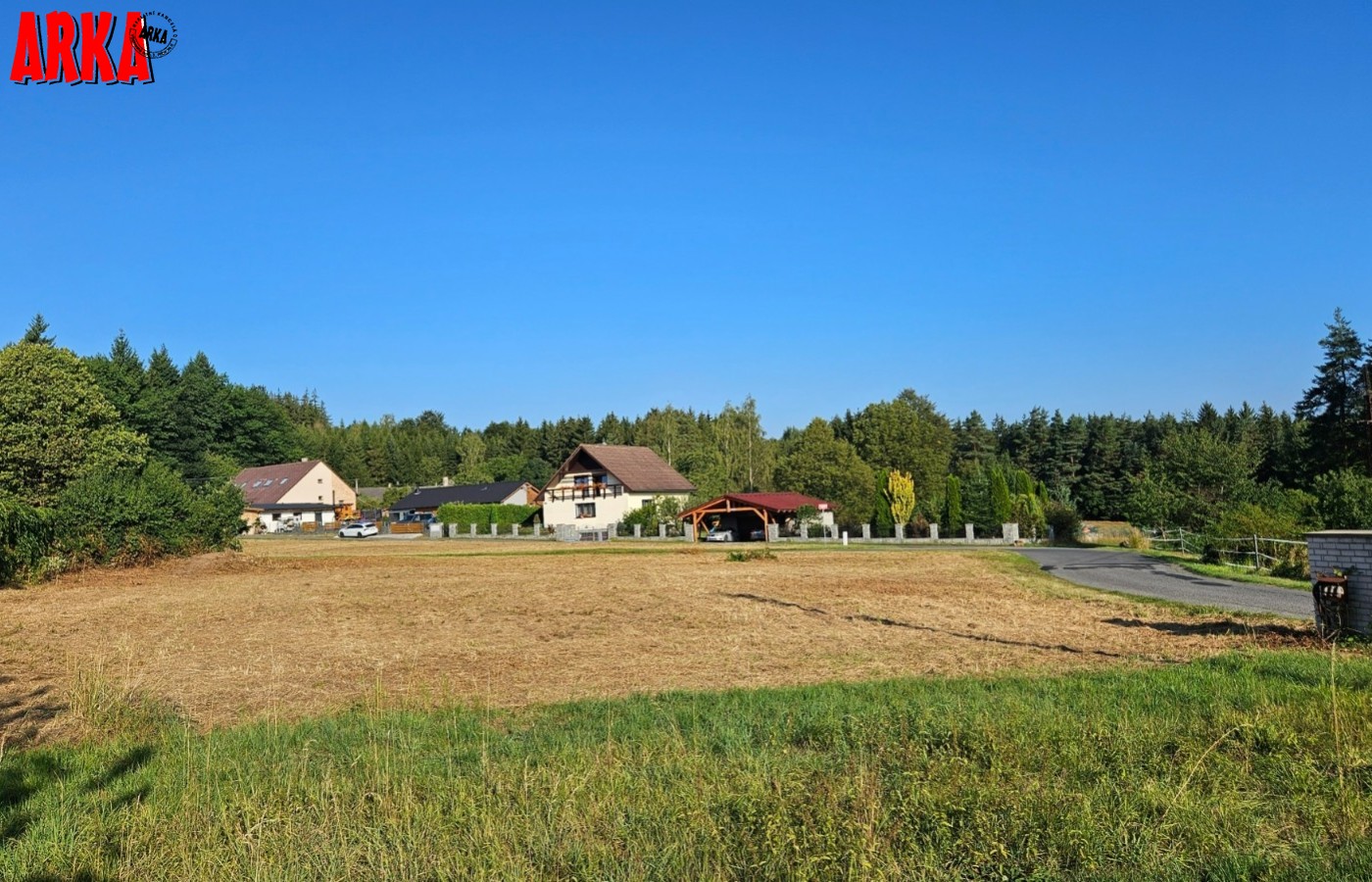 Prodej posledního stavebního pozemku o výměře 1063 m2 s podílem 1/7 na přístupové komunikaci včetně všech inž. sítí ve velice žádané lokalitě Příbram - Orlov. U pozemku je již hotové přípojné místo elektřiny, přípojka tlakové kanalizace včetně odpadní nádrže a čerpadla, vodovodní přípojka. Stavba přípojek je již hotová a čeká se na kolaudaci stavby. Ve fotkách jsou starší snímky ze stavby, která už je hotová. Na přístupové cestě se provádí osazení asfaltového povrchu. Vše má být hotové do konce roku 31.12.2025. Prodávající uhradí na svoje náklady vybudování uvedených přípojek a asfaltové cesty. Cena vybudování přípojek a cesty je již obsažena v ceně každého pozemku. Kupující již nic nepřiplácí na přípojky, akorát si zajistí elektroměrovou část el. přípojky, revizi a osazení elektroměru. Pozemky jsou na krásném místě 300 m od lesa. Ideální pro bydlení - příroda za domem a do města Příbram jede MHD a na Prahu přímé autobusové spojení /pid /. Praha vzdálená 60 km po dálnici D4 - cca 40 min. Orlov je část Příbrami, což je okresní město s veškerou infrastrukturou. Cca 300 m za domem začíná les, který přechází v souvislý pás Brdských lesů a na části je CHKO. Krásné a klidné bydlení. Na pozemky je zpracována architektonická studie Karnet architekti. Možnost požádat o stavební povolení po vyhotovení stavební dokumentace na dům podle vlastního uvážení. Na požádání nebo při prohlídce pozemku možnost do studie nahlédnout. Architekti navrhli typ zástavby - obytné přízemí a podkroví. Není nutné dodržet typ domu ze studie. Cena pozemku včetně přípojek a cesty je 4.700.000,-Kč. Podrobné informace v RK.