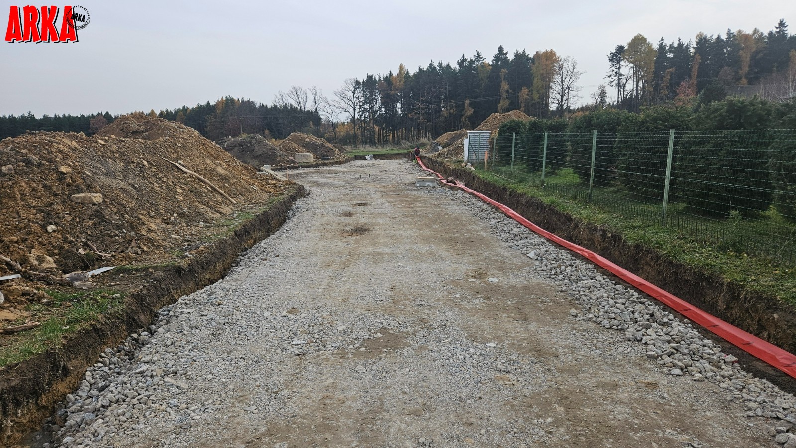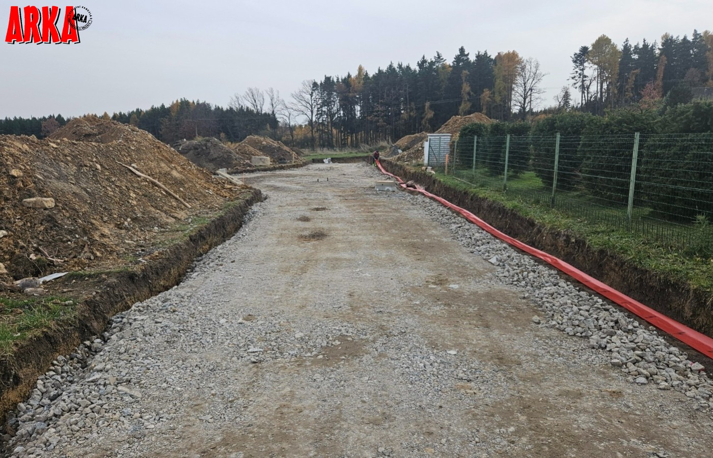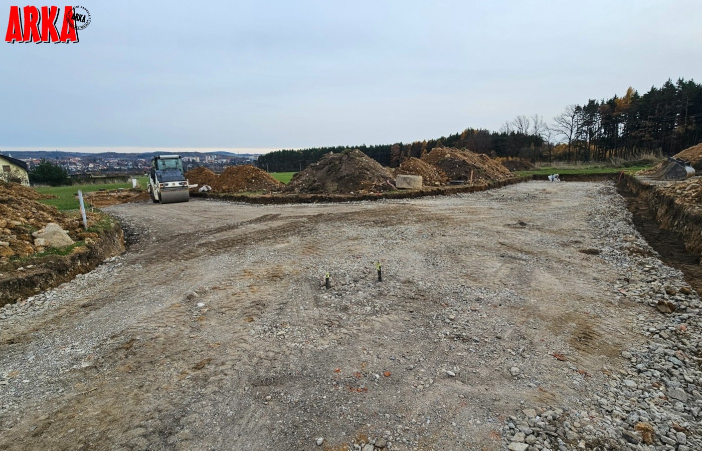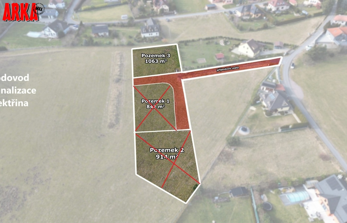 Prodej posledního stavebního pozemku o výměře 1063 m2 s podílem 1/7 na přístupové komunikaci včetně všech inž. sítí ve velice žádané lokalitě Příbram - Orlov. U pozemku je již hotové přípojné místo elektřiny, přípojka tlakové kanalizace včetně odpadní nádrže a čerpadla, vodovodní přípojka. Stavba přípojek je již hotová a čeká se na kolaudaci stavby. Ve fotkách jsou starší snímky ze stavby, která už je hotová. Na přístupové cestě se provádí osazení asfaltového povrchu. Vše má být hotové do konce roku 31.12.2025. Prodávající uhradí na svoje náklady vybudování uvedených přípojek a asfaltové cesty. Cena vybudování přípojek a cesty je již obsažena v ceně každého pozemku. Kupující již nic nepřiplácí na přípojky, akorát si zajistí elektroměrovou část el. přípojky, revizi a osazení elektroměru. Pozemky jsou na krásném místě 300 m od lesa. Ideální pro bydlení - příroda za domem a do města Příbram jede MHD a na Prahu přímé autobusové spojení /pid /. Praha vzdálená 60 km po dálnici D4 - cca 40 min. Orlov je část Příbrami, což je okresní město s veškerou infrastrukturou. Cca 300 m za domem začíná les, který přechází v souvislý pás Brdských lesů a na části je CHKO. Krásné a klidné bydlení. Na pozemky je zpracována architektonická studie Karnet architekti. Možnost požádat o stavební povolení po vyhotovení stavební dokumentace na dům podle vlastního uvážení. Na požádání nebo při prohlídce pozemku možnost do studie nahlédnout. Architekti navrhli typ zástavby - obytné přízemí a podkroví. Není nutné dodržet typ domu ze studie. Cena pozemku včetně přípojek a cesty je 4.700.000,-Kč. Podrobné informace v RK.